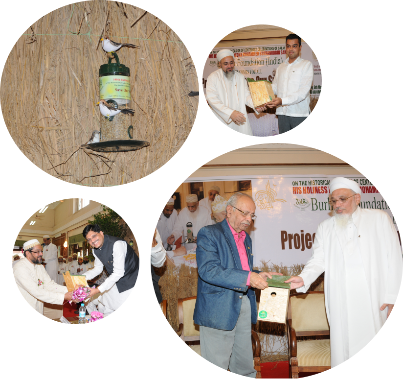 On March 6, 2011, in commemoration of the 100th birthday of His Holiness Syedna Mohammed Burhanuddin, Burhani Foundation initiated the Save Our Sparrows project, an effort to preserve and protect sparrow habitats threatened by rapid urbanization. This humble yet impactful initiative began with a large-scale bird feeder distribution drive, inaugurated by Prime Minister Narendra Modi in his capacity as the then Hon’ble Chief Minister of Gujarat. The campaign marked a significant step toward ensuring the survival of sparrows and fostering greater awareness around bird conservation.